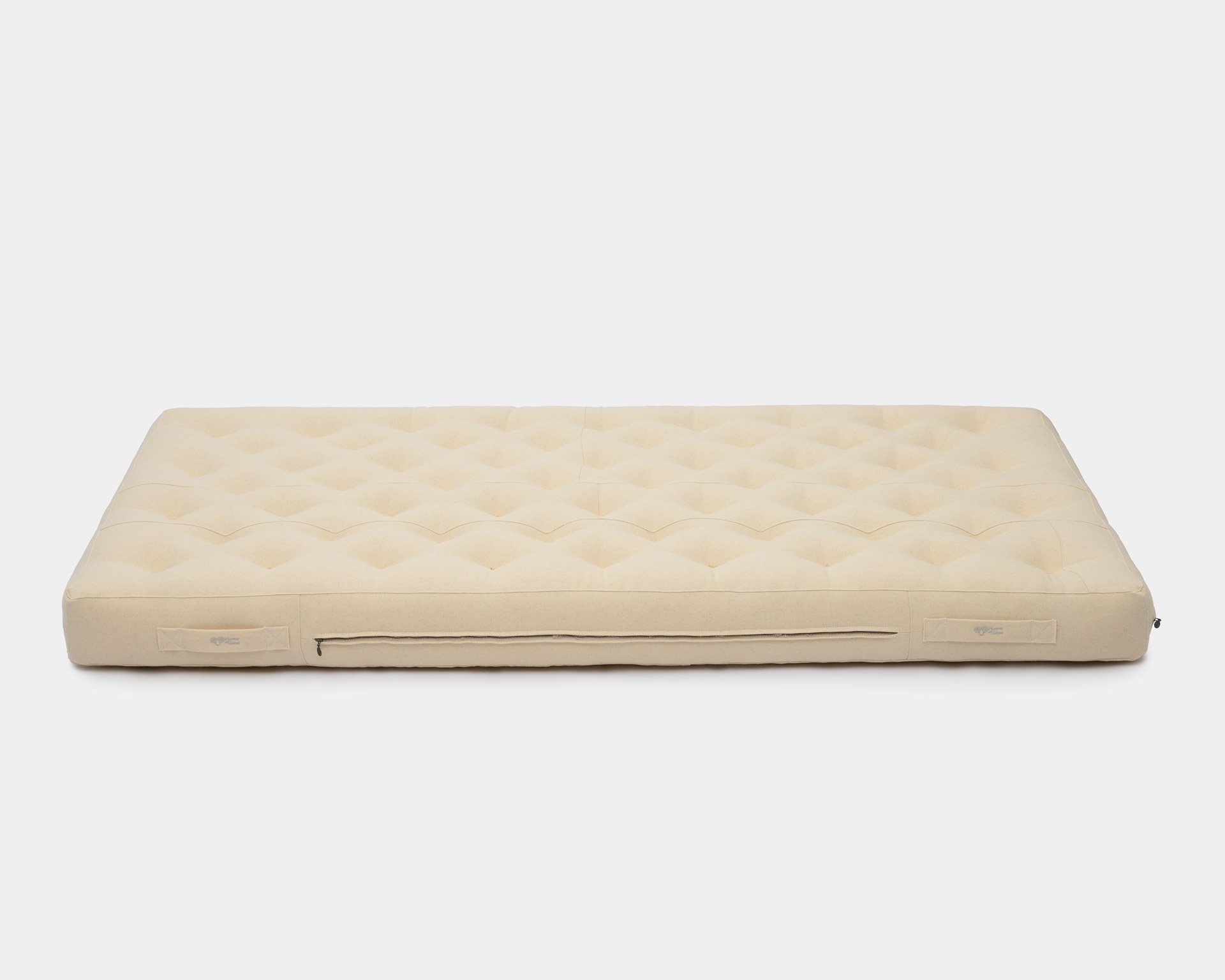 Ved at vælge denne madras af reststoffer hjælper du med at holde værdifulde materialer ude af lossepladser, samtidig med at du nyder de genopbyggende fordele ved naturlig uld. Det er den økologiske budgetmadras, der understøtter både dit velbefindende og planeten. Valgfri uldbeskytter eller aftageligt betræk fås.