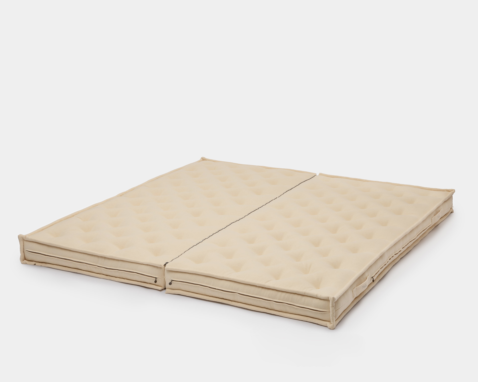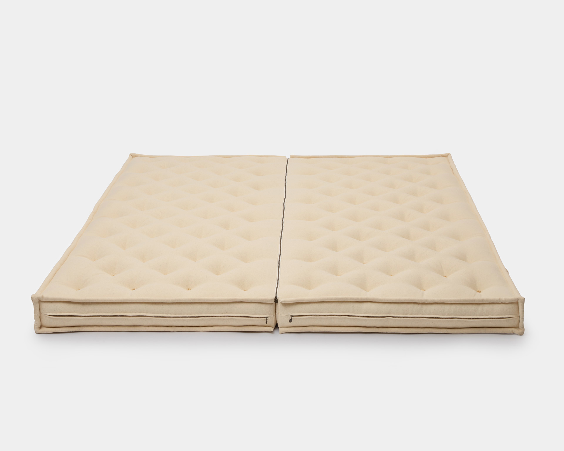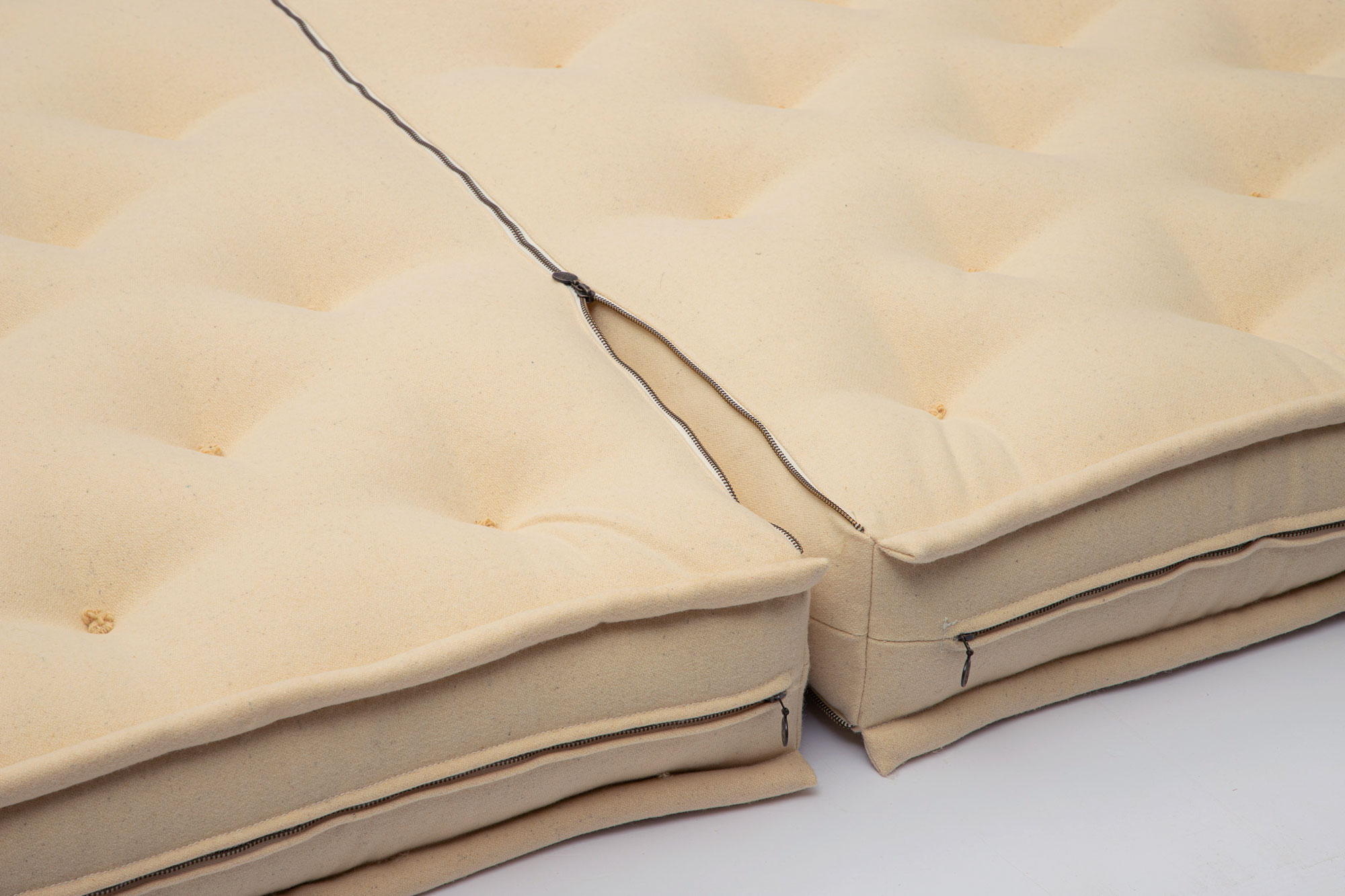 For par, der ikke kan blive enige om én madras, gør denne håndlavede uldmadras det nemt at dele seng og samtidig bevare sin egen komfort. Hver partner kan nyde sin egen fasthed, og derefter kan madrasserne samles til en fælles seng med naturlig temperaturregulering og allergivenlig komfort.
