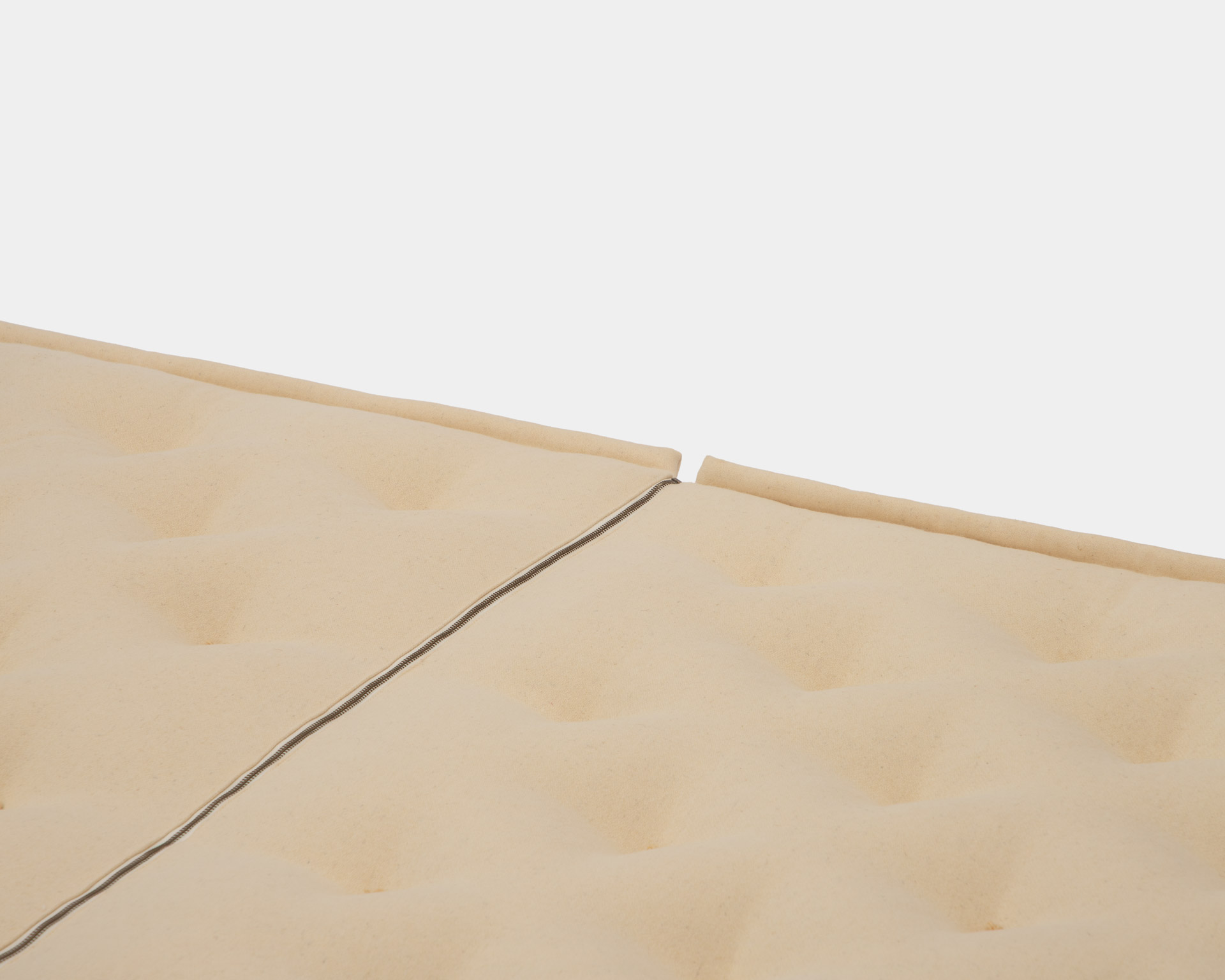 Da hver side af Home of Wool-madrassen med delt uld kan tilpasses forskelligt, kan det også være nødvendigt at tilpasse din sengestel. Når partnere vælger forskellige tykkelser, vil en specialfremstillet sengestel holde begge madrasser i samme højde, så de kan lynes sammen uden problemer. Det er den bedste måde at nyde fleksibiliteten ved denne madras til par, samtidig med at man bevarer en jævn soveflade. Hvis du ikke har noget imod en lille forskel i højden, kan du også bestille madrasserne uden lynlås. Vi tilpasser dem til din sengestel og justerer dem efter din komfort, så de stadig passer perfekt.