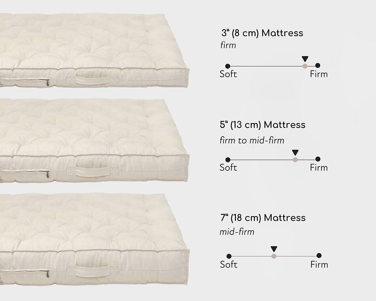 De fleste futoner er perfekte til små lejligheder, men de madrasser, der normalt følger med, giver ikke den optimale støtte, som din krop har brug for. Vores uldfutonmadrasser er den ideelle løsning på dette problem. Vi kan tilpasse dem til enhver futonramme!