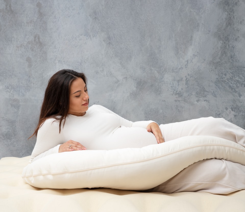 Nueve meses es un largo viaje, y un buen descanso marca la diferencia. Nuestra almohada de embarazo en forma de C se adapta a tu cuerpo para proporcionarte la comodidad y el apoyo que necesitas para un sueño más profundo y reparador. Esta almohada de maternidad no tóxica es segura, natural y está diseñada para aliviar las dificultades del descanso durante el embarazo. ¡Y todo su interior es de lana pura!