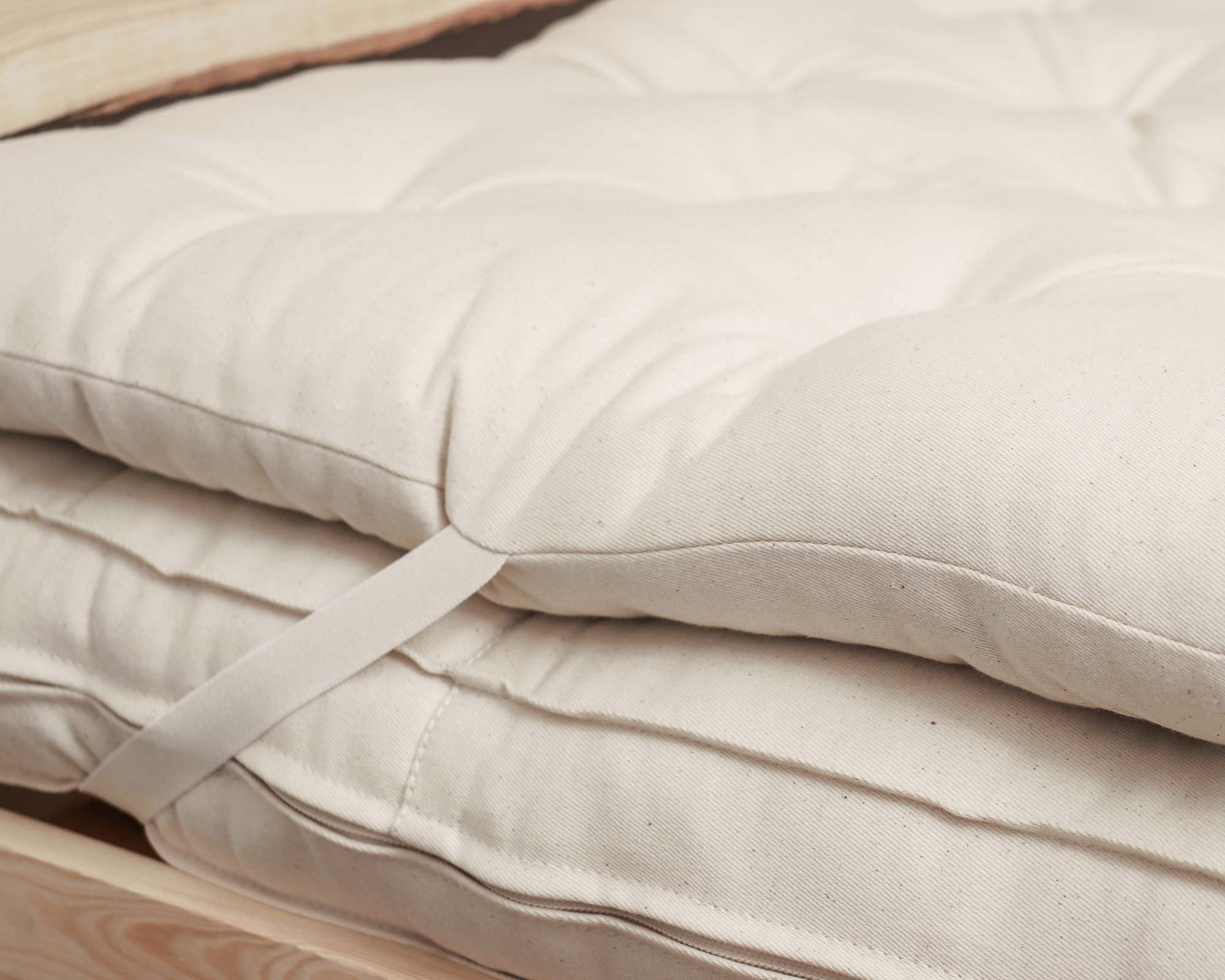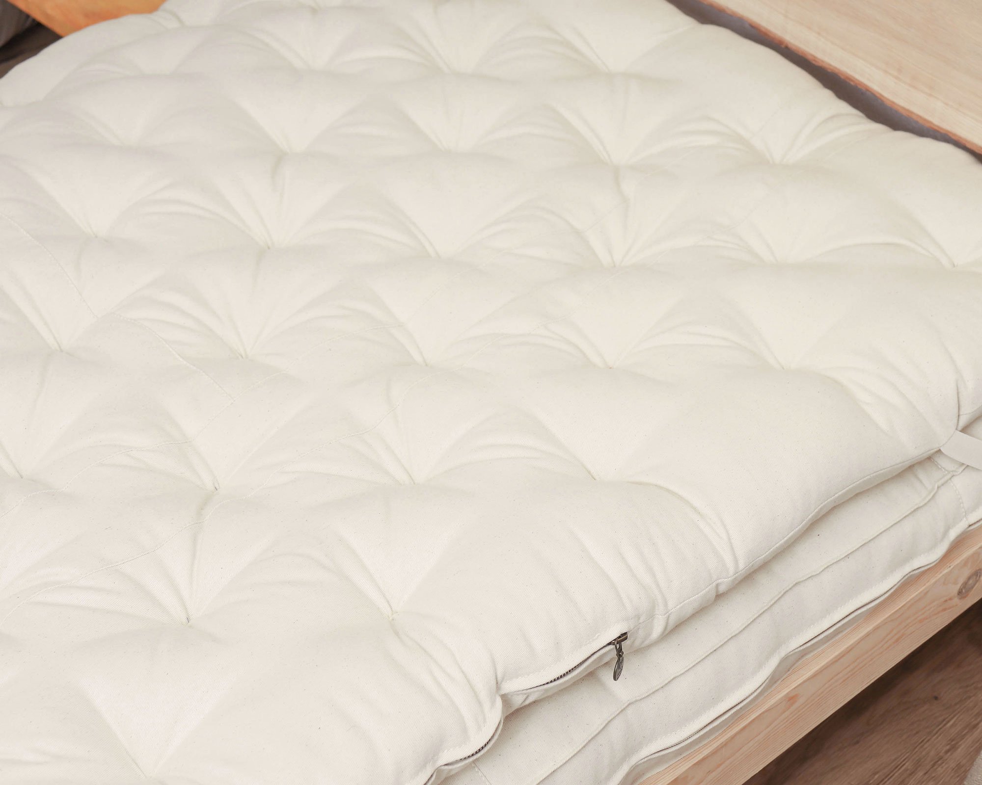 El cubrecolchón está relleno de lana orgánica que amortigua el cuerpo para ofrecer un soporte adecuado y mantener una temperatura constante durante el sueño. La lana absorbe de forma natural el exceso de calor y humedad, por lo que por fin podrás decir adiós a las noches de sudor y despertarte seco y cómodo. Cada pieza está cosida a mano con hilo de lino, y los lazos de lana fijan el relleno en su sitio para una mayor durabilidad. También hemos añadido correas elásticas para fijarlo de forma segura sobre el colchón. Las cremalleras en los cuatro lados te permiten ajustar el relleno. Un cubrecolchón totalmente personalizable y cómodo. Y sí, ¡hacemos tamaños a medida!