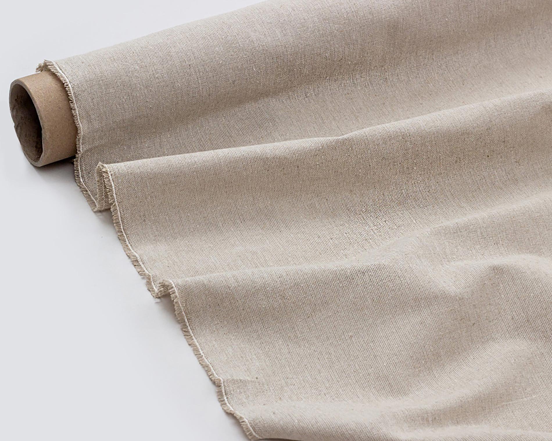 Ei pinnoitetta, ei viimeistelyä. Todella kemikaaliton kangas. Sen sävy on kuitujen oma väri. Vaalea, raaka ja kiillottamaton. Se hengittää helposti. Ilma kulkee sen läpi vaivattomasti, jättäen viileän, kuivan tuntuman. Ajan myötä se rentoutuu, taittuu pehmeästi ja muuttuu käsissä pehmeämmäksi. Silti se on kestävä kangas, tarpeeksi vahva kestämään vuosia, mutta silti lämmin ja miellyttävä iholla.