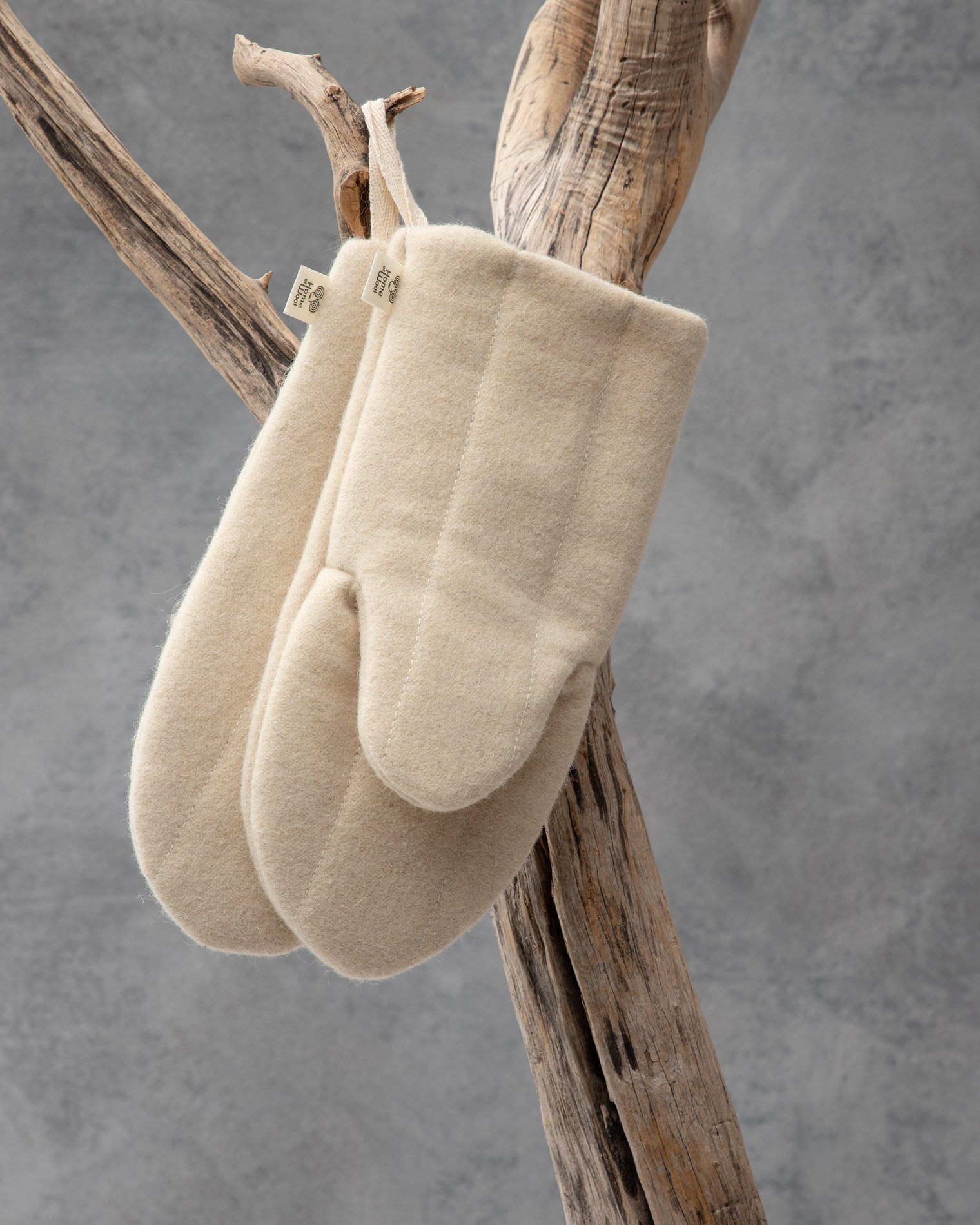 Suojaa kätesi keittiössä tällä käsintehdyllä, puhtaasta villasta valmistetulla uunikintaalla. Sisällä oleva orgaaninen villavuori tarjoaa luonnollisen suojan, joten voit käsitellä kuumia pannuja helposti. Se toimii myös kattilapidikkänä ja tukee samalla Zero Waste Mission -kampanjaamme.