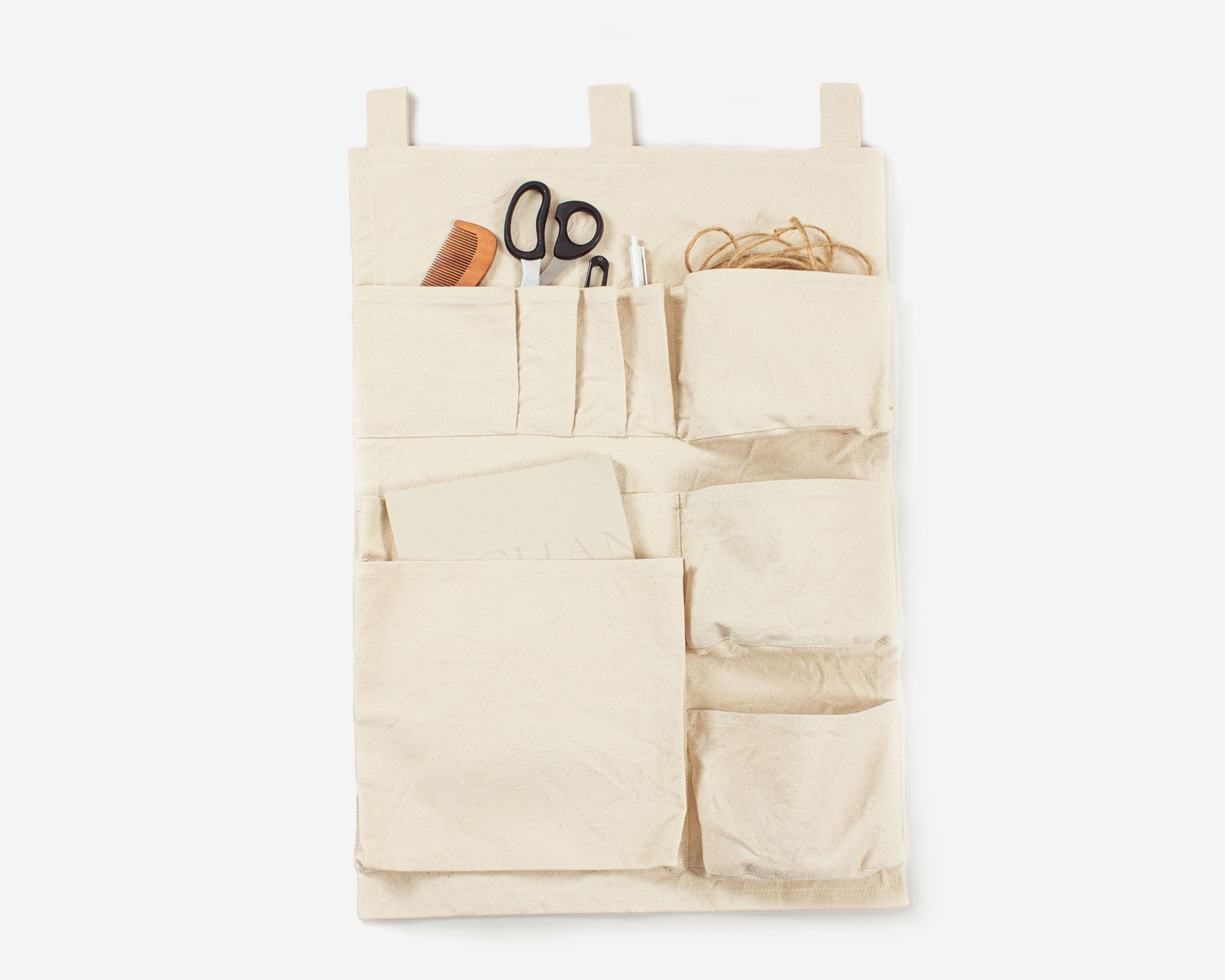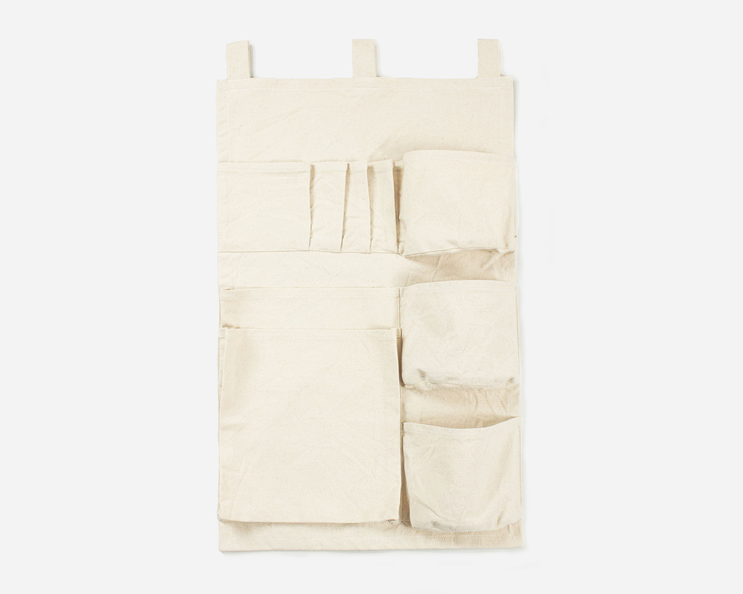 L'organiseur mesure environ 50 x 80 cm, ce qui vous offre beaucoup d'espace sans prendre trop de place. Le tissu est en coton biologique 100% sans finitions nocives. Son design simple est intemporel et multifonctionnel.