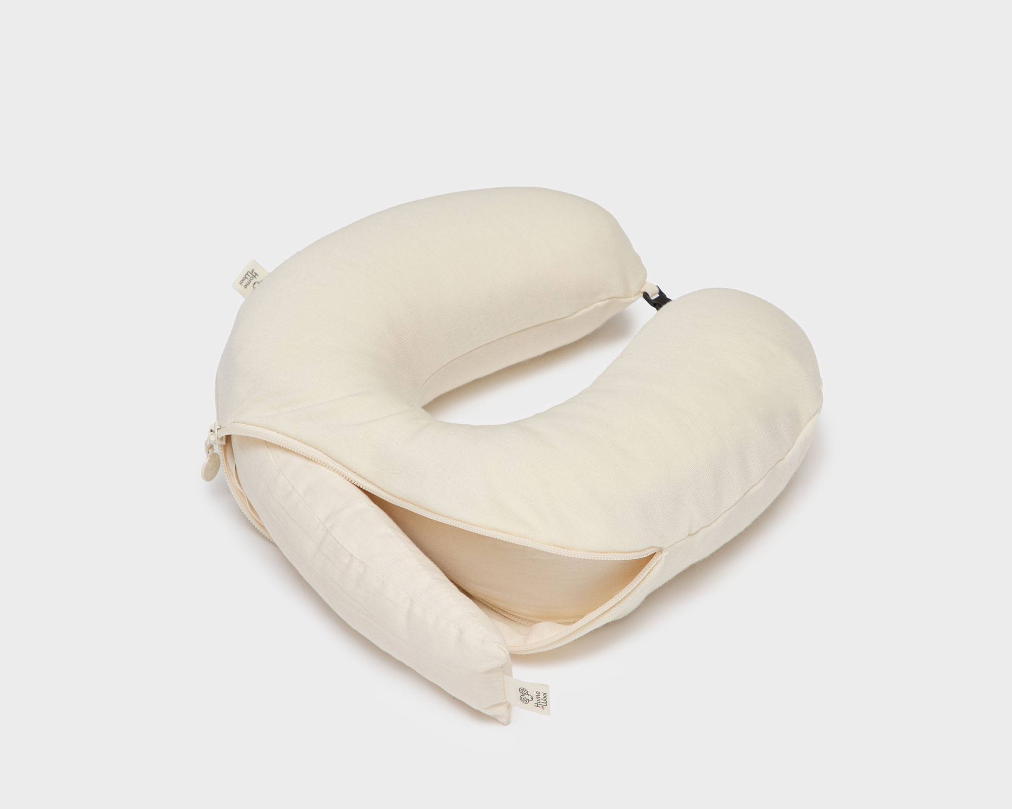 Vous en avez assez des oreillers synthétiques rigides lorsque vous voyagez ? Cet oreiller de voyage personnalisable vous offre une douceur que vous pouvez réellement ressentir. Rempli de laine respirante et recouvert d'un tissu entièrement naturel, c'est un produit rare. Un confort qui vous accompagne partout. Un oreiller de voyage léger, conçu pour les moments de détente entre deux destinations.