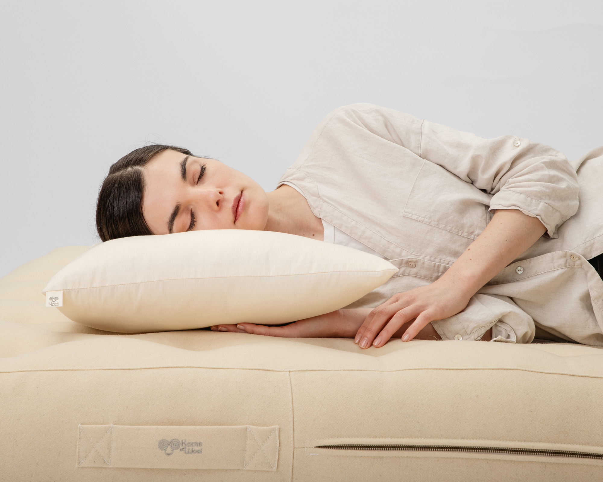 À l'intérieur, vous trouverez de la laine naturelle qui offre un soutien constant tout en restant merveilleusement respirante. Grâce à la fermeture éclair, vous pouvez ajuster la laine jusqu'à ce que l'oreiller vous semble parfait. L'un des avantages de la laine est qu'elle équilibre la température. Vous n'aurez pas trop chaud en été et, en hiver, elle vous procurera juste assez de chaleur. Vous êtes sensible ou avez des problèmes avec les acariens ? La laine leur résiste naturellement, ce qui rend cet oreiller particulièrement doux pour les dormeurs sensibles.