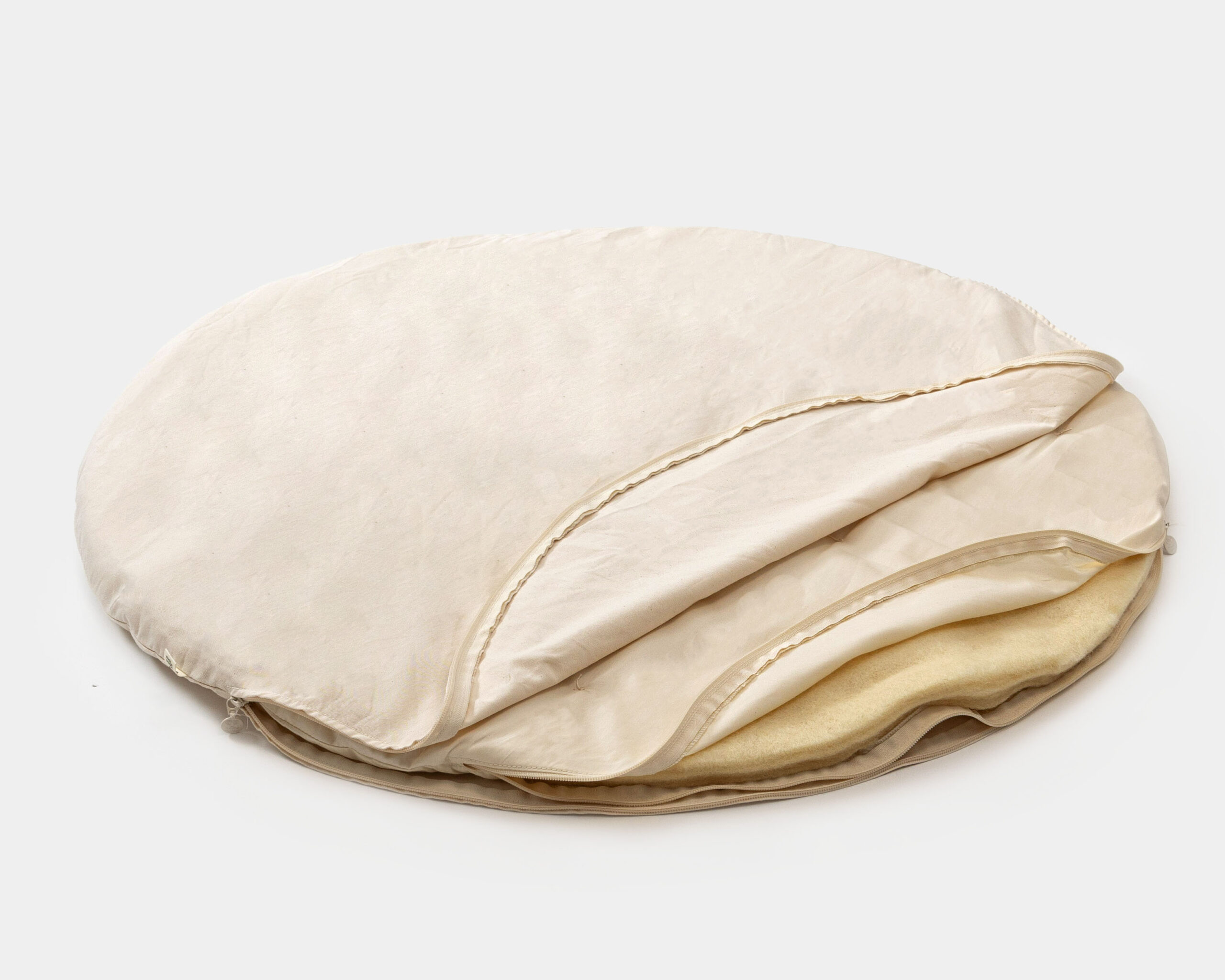 Chaque tapis de jeu pour enfants est doté d'une couche de rembourrage en laine biologique d'épaisseur optimale pour soutenir votre tout-petit pendant qu'il joue, se repose ou fait tout autre chose. Il est livré avec une housse amovible pour faciliter le lavage et l'entretien. La laine régule naturellement la température et l'humidité, ce qui rend le tapis de jeu pour enfants frais en été et confortable en hiver. Vous n'avez plus à vous soucier du sol froid.