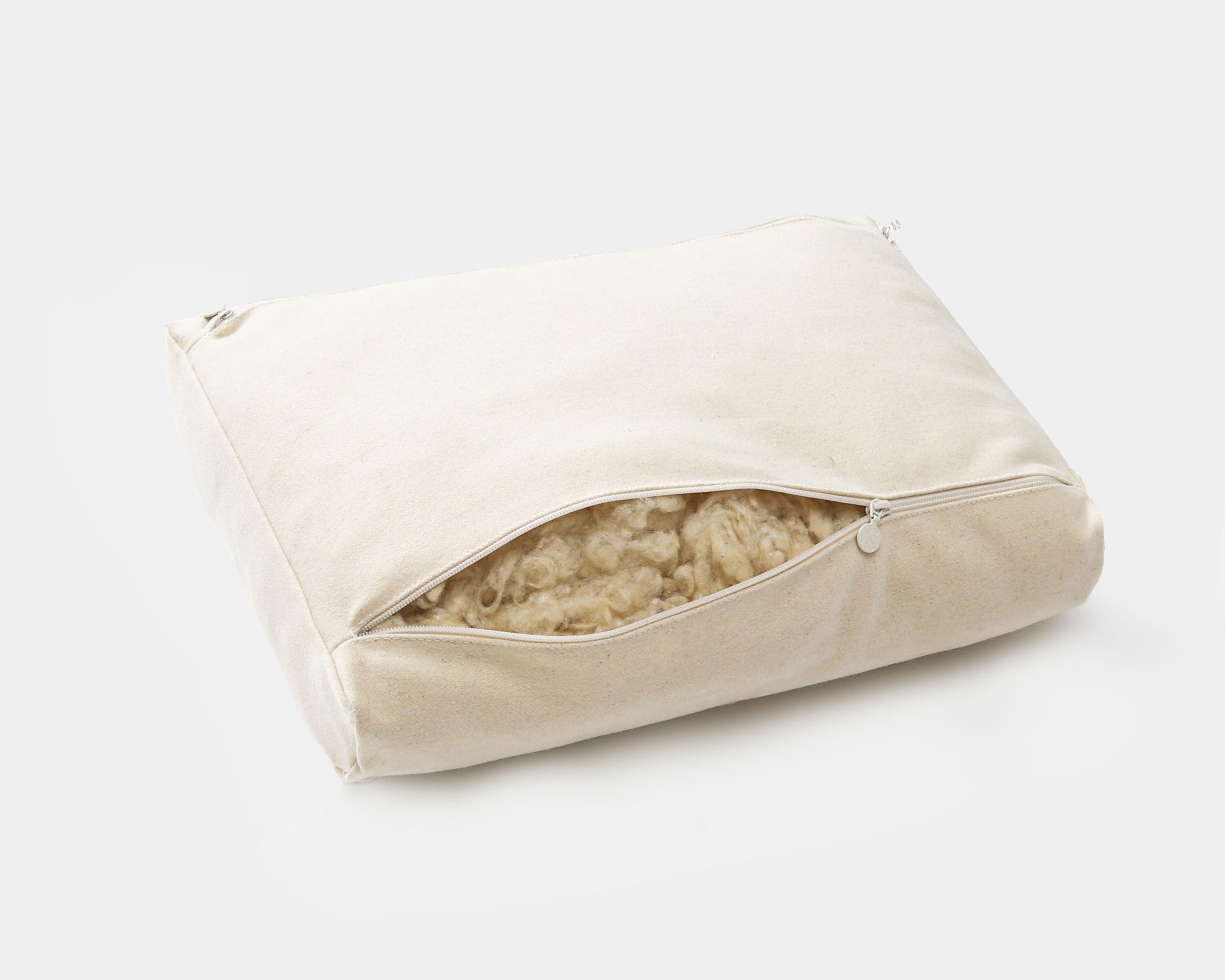 The zipper of the insert lets you adjust the loft by adding or removing filling. Optional protectors and pillowcases are available. This organic wool pillow is fully sustainable, biodegradable, and crafted with respect for both wellness and the planet. If you need help choosing the right pillow for you, read our guide.