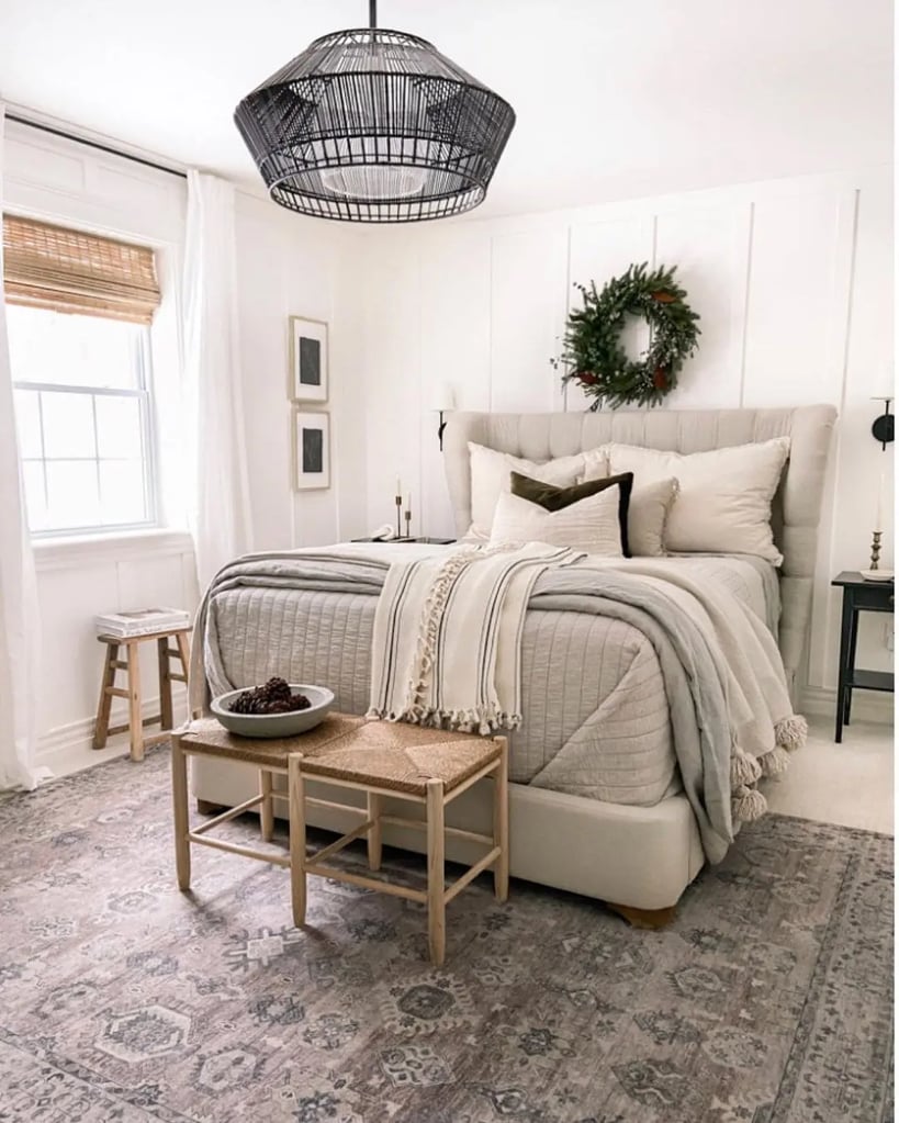 Strati aggiuntivi di covere di lana merino o coperte di lana pesanti offrirà gli stessi vantaggi aggiungendo un tocco morbido e rilassante. La stratificazione è una di quelle fantastiche idee per la camera da letto delle coppie che si applica anche al soggiorno o a qualsiasi altro spazio dal tono romantico. È un modo versatile di combinare biancheria da letto, coperte e piumoni per il massimo comfort e praticità.