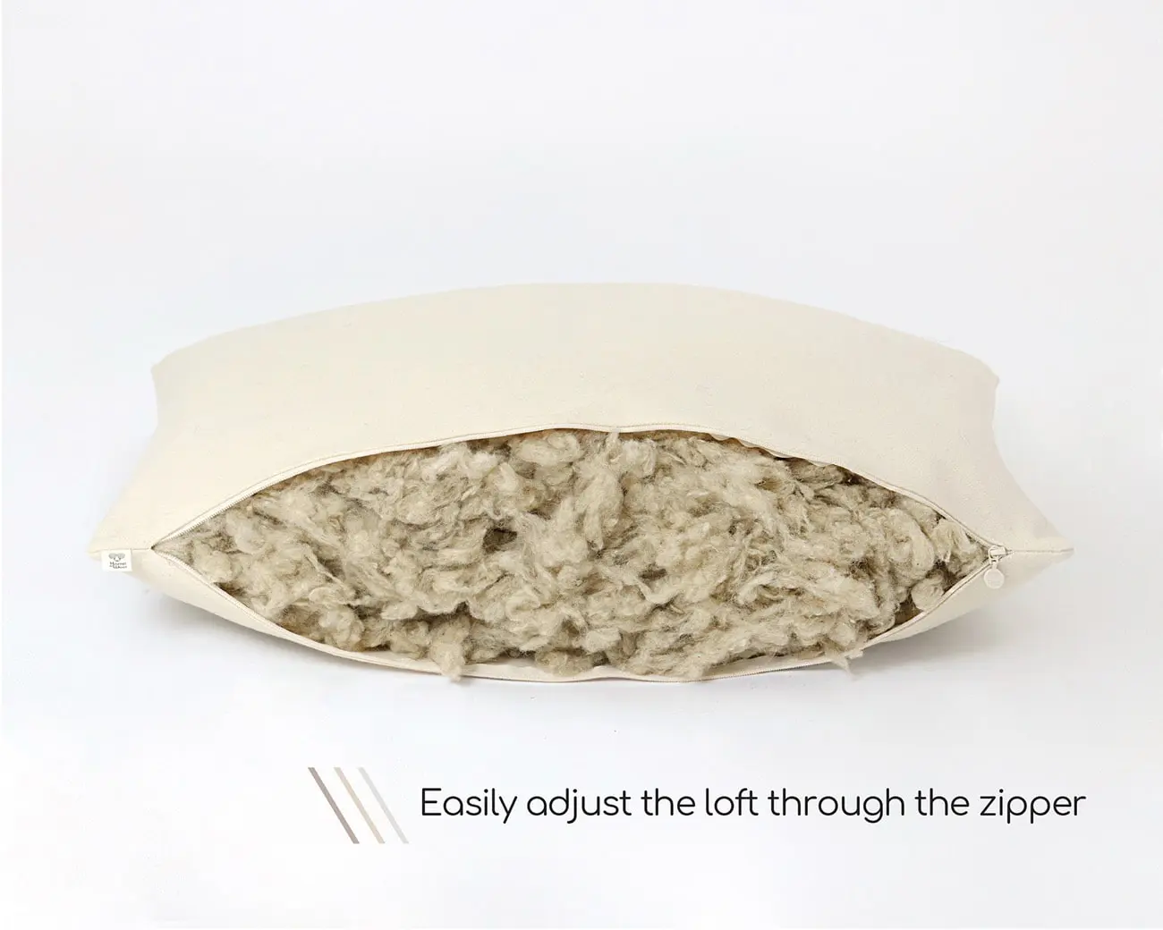 Pure and one-of-a-kind, our wool pillows contain no dyes, fire retardants, bleaches, or toxins, making them a safe and natural choice for anyone looking to avoid harsh chemicals. And, unlike their synthetic counterparts that can lose their shape and support over time, our wool pillows are designed to maintain their form and comfort for years to come.