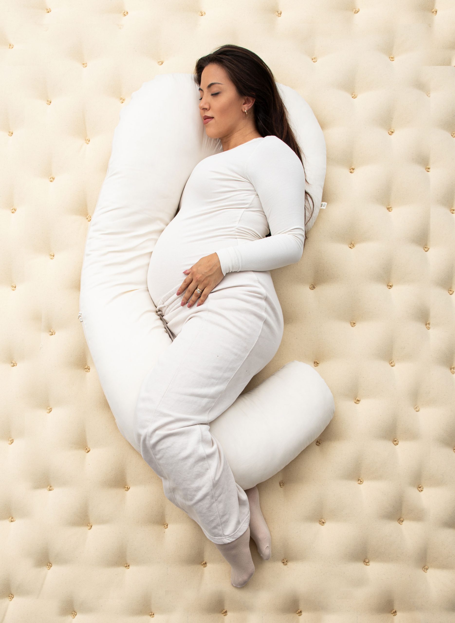 Nove mesi sono un lungo viaggio e un buon riposo fa la differenza. Il nostro cuscino per la gravidanza a forma di C avvolge il tuo corpo per offrirti il comfort e il sostegno di cui hai bisogno per un sonno più profondo e ristoratore. Questo cuscino per la maternità non tossico è sicuro, naturale e progettato per alleviare le difficoltà del riposo durante la gravidanza. E all'interno è tutto in pura lana!
