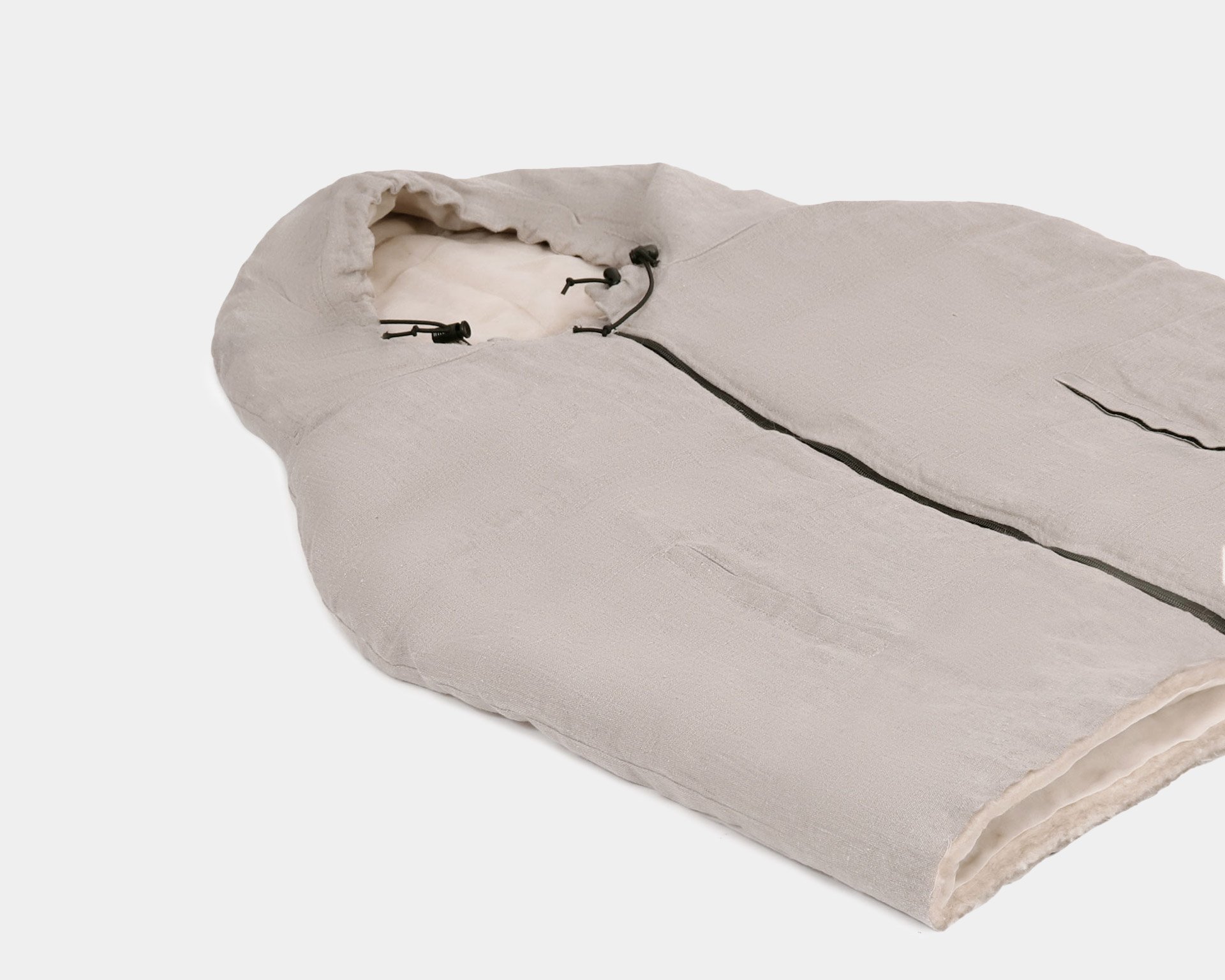 Dormite sonni tranquilli ovunque vi portino i vostri viaggi con il nostro sacco a pelo in lana naturale, parte della nostra collezione Nomad Heat. Riempito di pura lana e rifinito con un guscio di lino e una fodera in seta di gelso, è un sacco a pelo traspirante che vi mantiene accoglienti, asciutti e comodi. È il capo perfetto per gli amanti dell'avventura all'aria aperta che tengono alla salute, al comfort e alla sostenibilità. È completamente personalizzabile e si possono scegliere il livello di calore e le dimensioni, oltre ad altri dettagli.