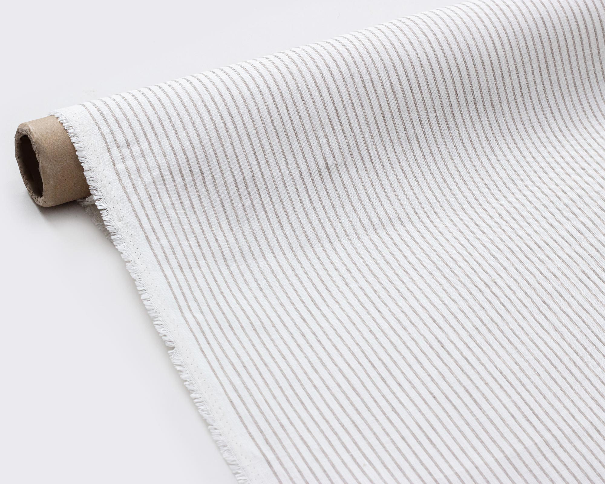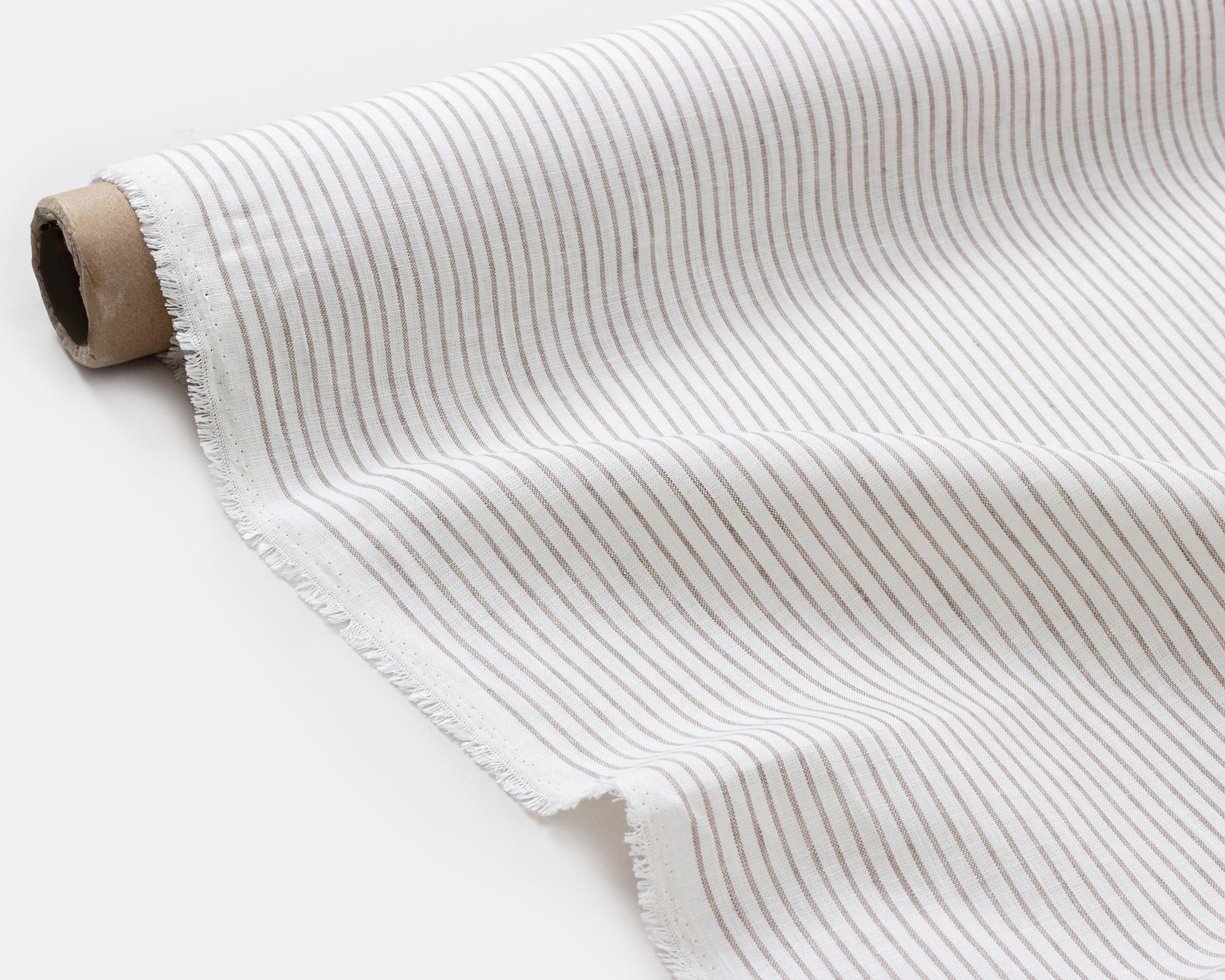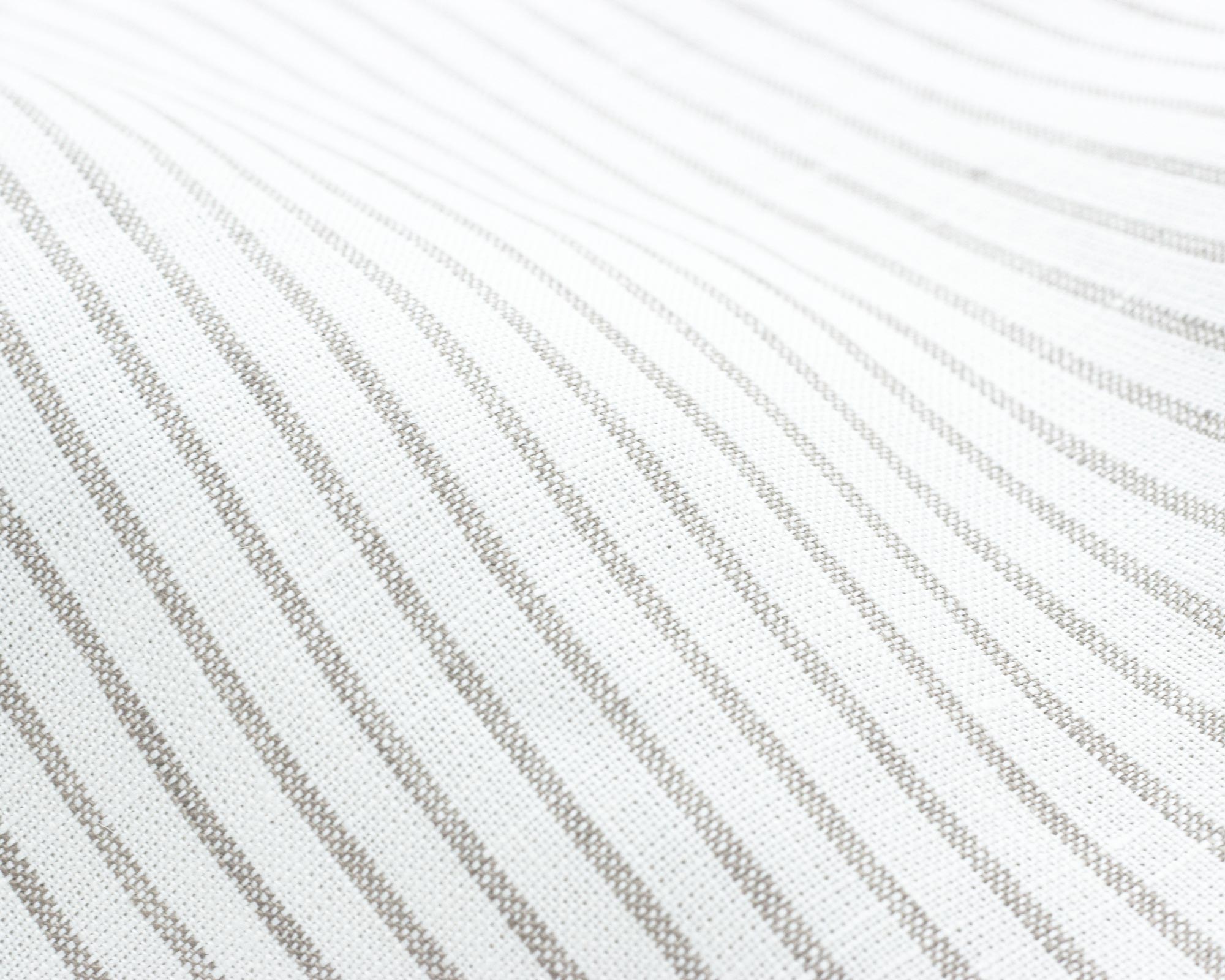 This linen fabric with thin grey stripes is perfect for sheets, pillowcases, and even delicate newborn bedding. Made from natural linen fabric, it is soft and breathable. Woven to the highest OEKO-TEX certified fabric standards, it ensures purity and safety for both everyday bedding and delicate nursery use.