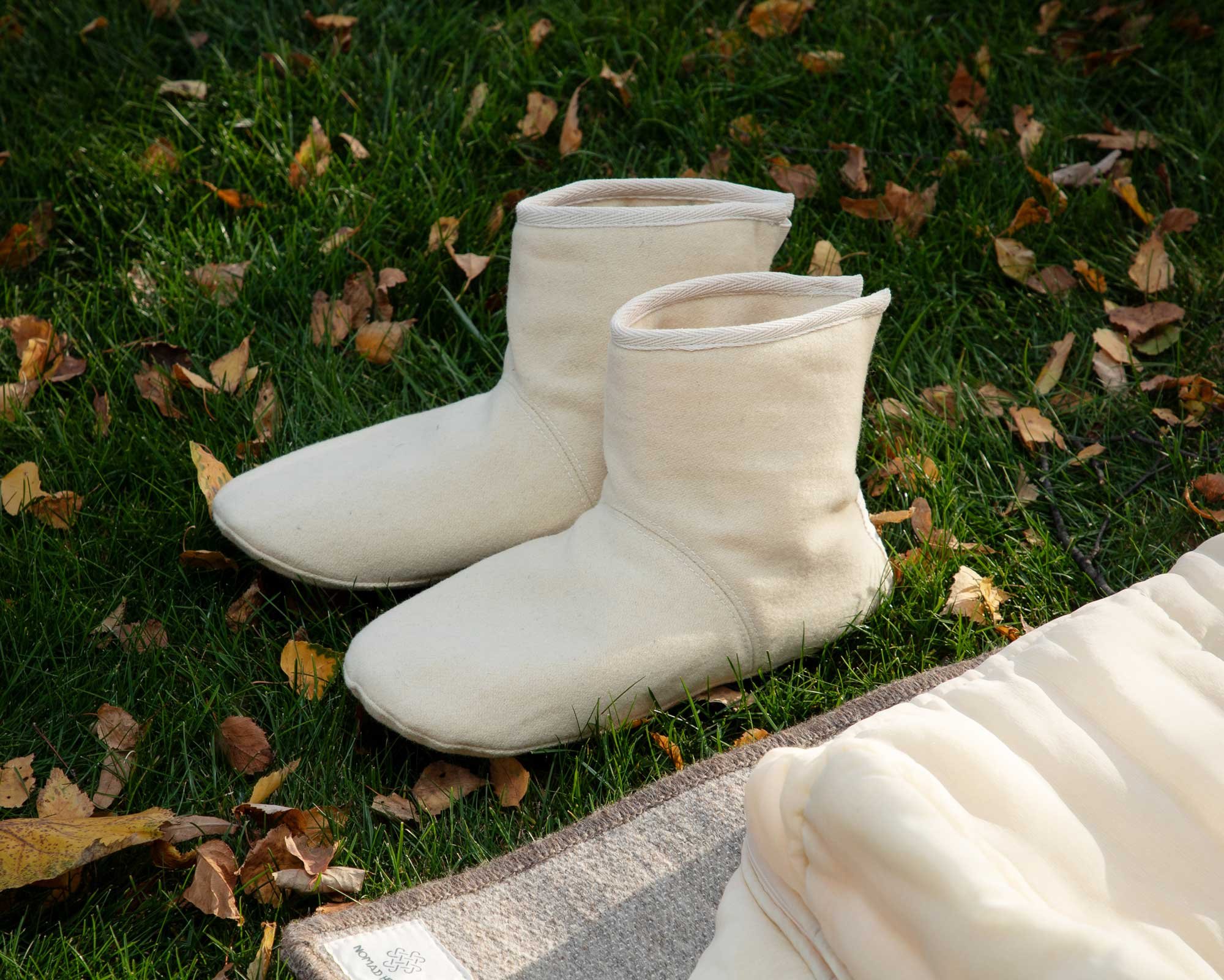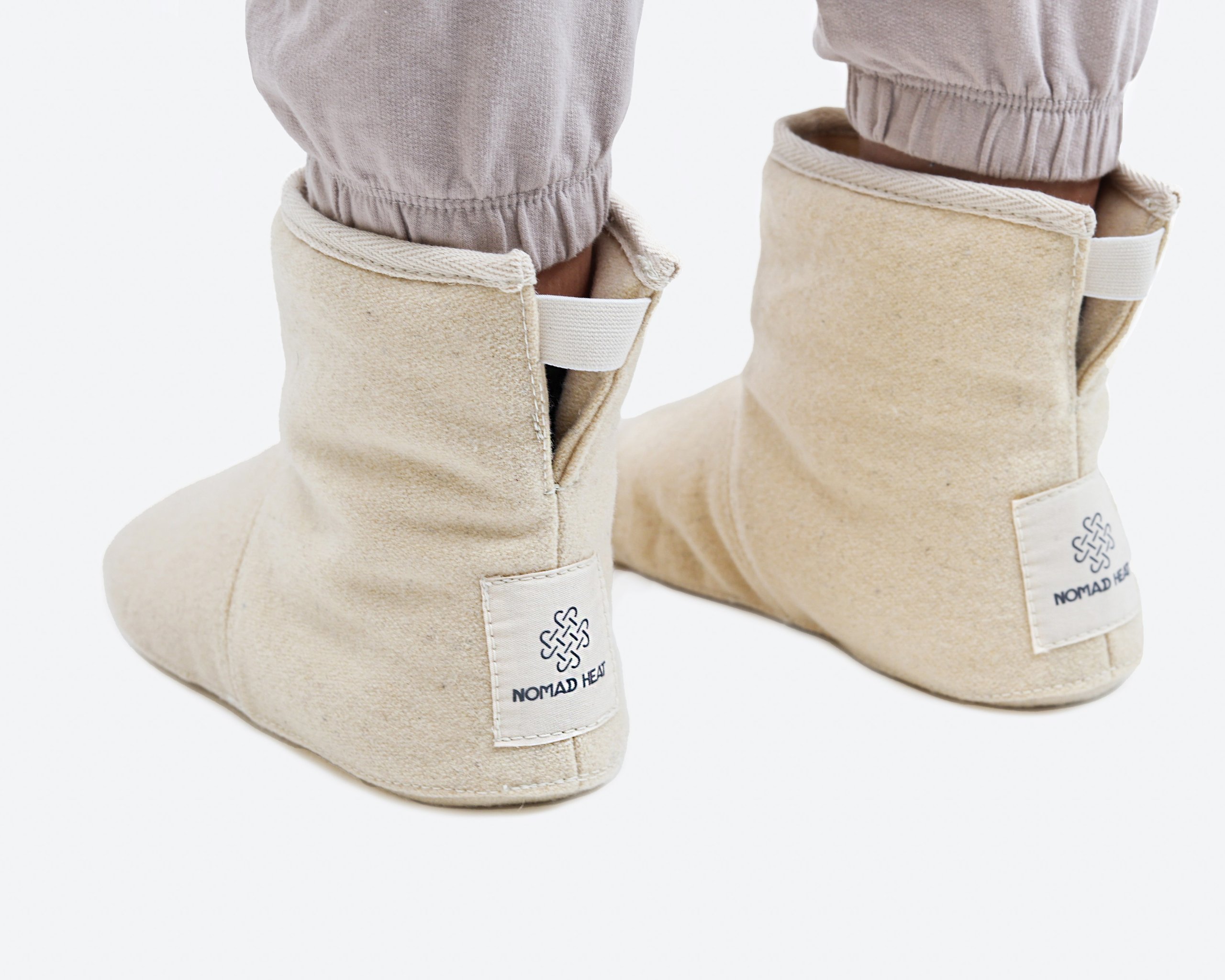 Disse pustende ulltøflene er en del av vår Nomad Heat-kolleksjon og er perfekte til bruk hjemme eller i soveposen når du er på campingtur. Dette minimalistiske, bærekraftige og naturlig allergivennlige fottøyet i naturlig ull er ideelt for personer med allergi eller overfølsomhet.