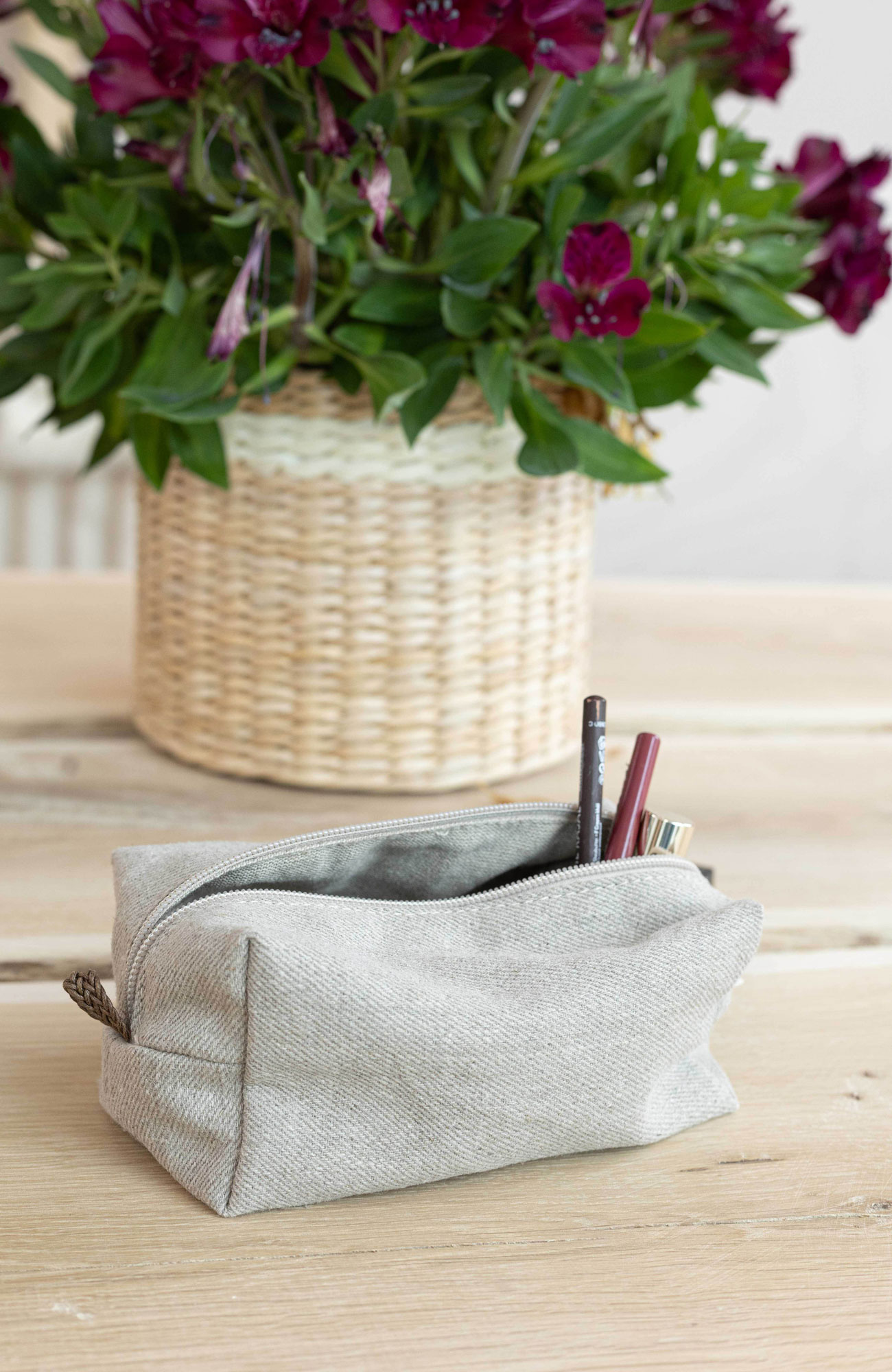 Perfect voor gebruik als toilettas, make-uptasje of dagelijkse organizer. Hiermee kunt u uw benodigdheden netjes opbergen, zowel thuis als onderweg. Gemaakt van Oeko-Tex-gecertificeerd linnen, een veilige en natuurlijke stof. Geen giftige afwerkingen. Het voelt licht aan, maar is toch sterk genoeg om lang mee te gaan, met een textuur die het tasje een rustige elegantie geeft.