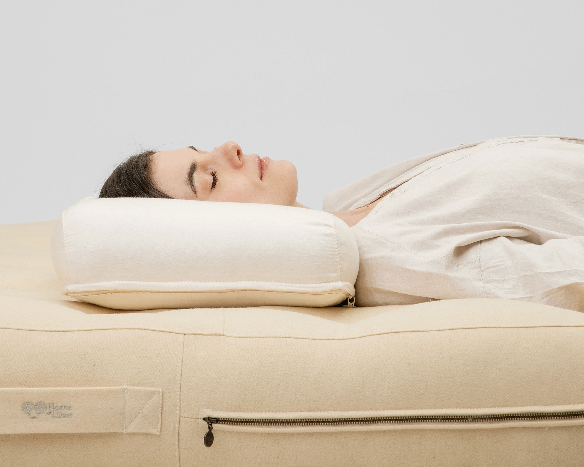 The Wool Back Sleeper Pillow offers optimal back support and personalized comfort with three neck and head support options. Handmade with 100% natural wool filling, this pillow supports better sleep while keeping you cool and easing pressure points.