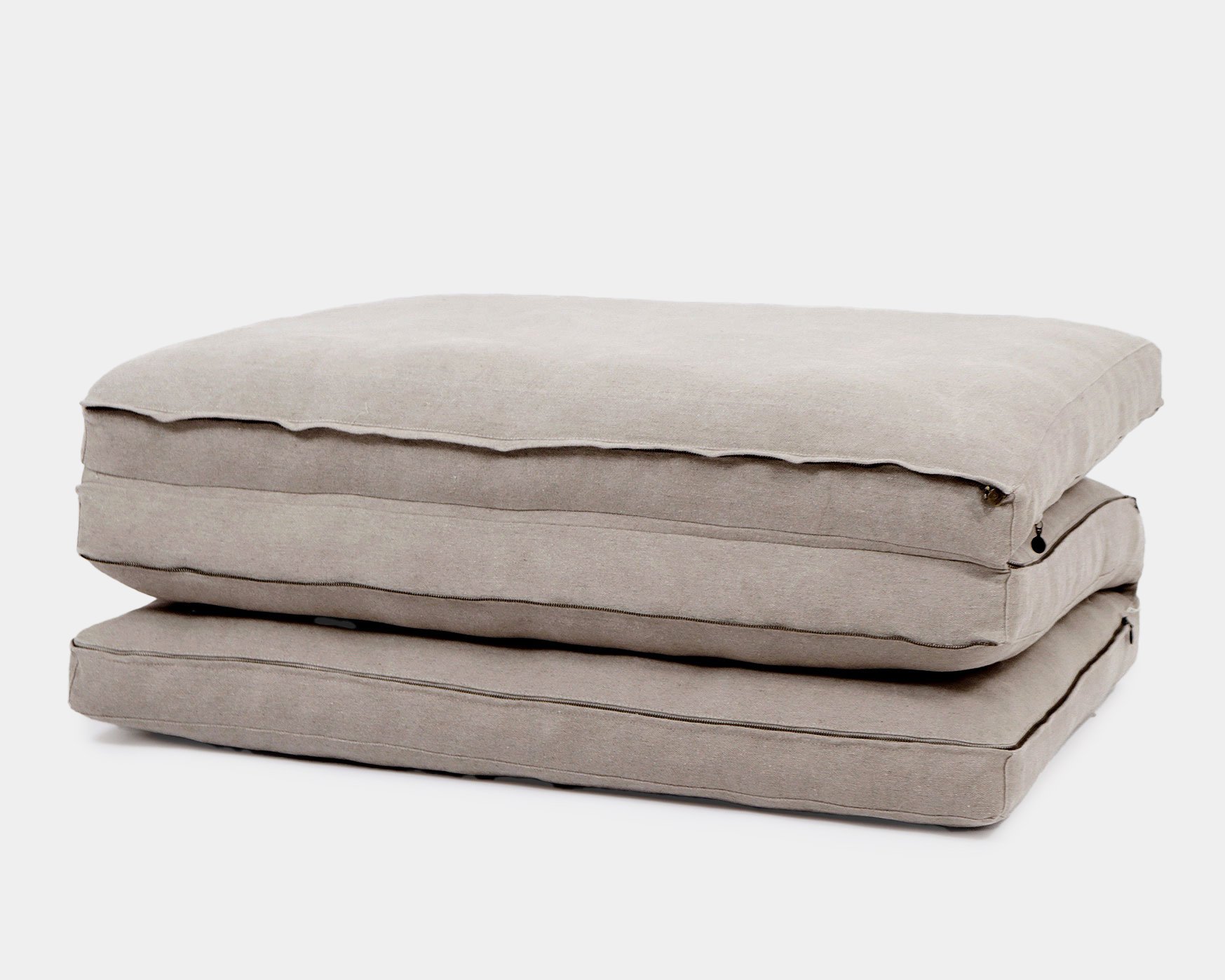 The foldable wool mattress is designed to bring you great sleep, wherever you need it. Each piece is carefully filled with layers of pure wool and hand-tufted so that the filling stays in place. Wool is known for its breathability and springiness. That means perfect sleep temperature and optimal body support. The wool filling supports your body and helps keep your posture comfortable through the night. It balances temperature and draws away moisture, so you stay cozy and dry. No sweats, but also no chilly feet. A wool mattress always feels fresh and helps you enjoy deeper, uninterrupted sleep.