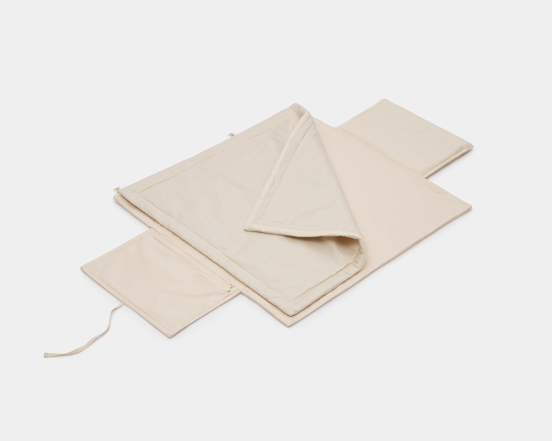 This portable changing pad gives you and your baby a clean, cushioned surface for diaper changes and baby massages anywhere. Filled with breathable wool and wrapped in organic cotton, it folds neatly for travel yet feels as comfortable as a changing table pad at home. Safe and easy to wash. The perfect mat for your daily routines with the baby.