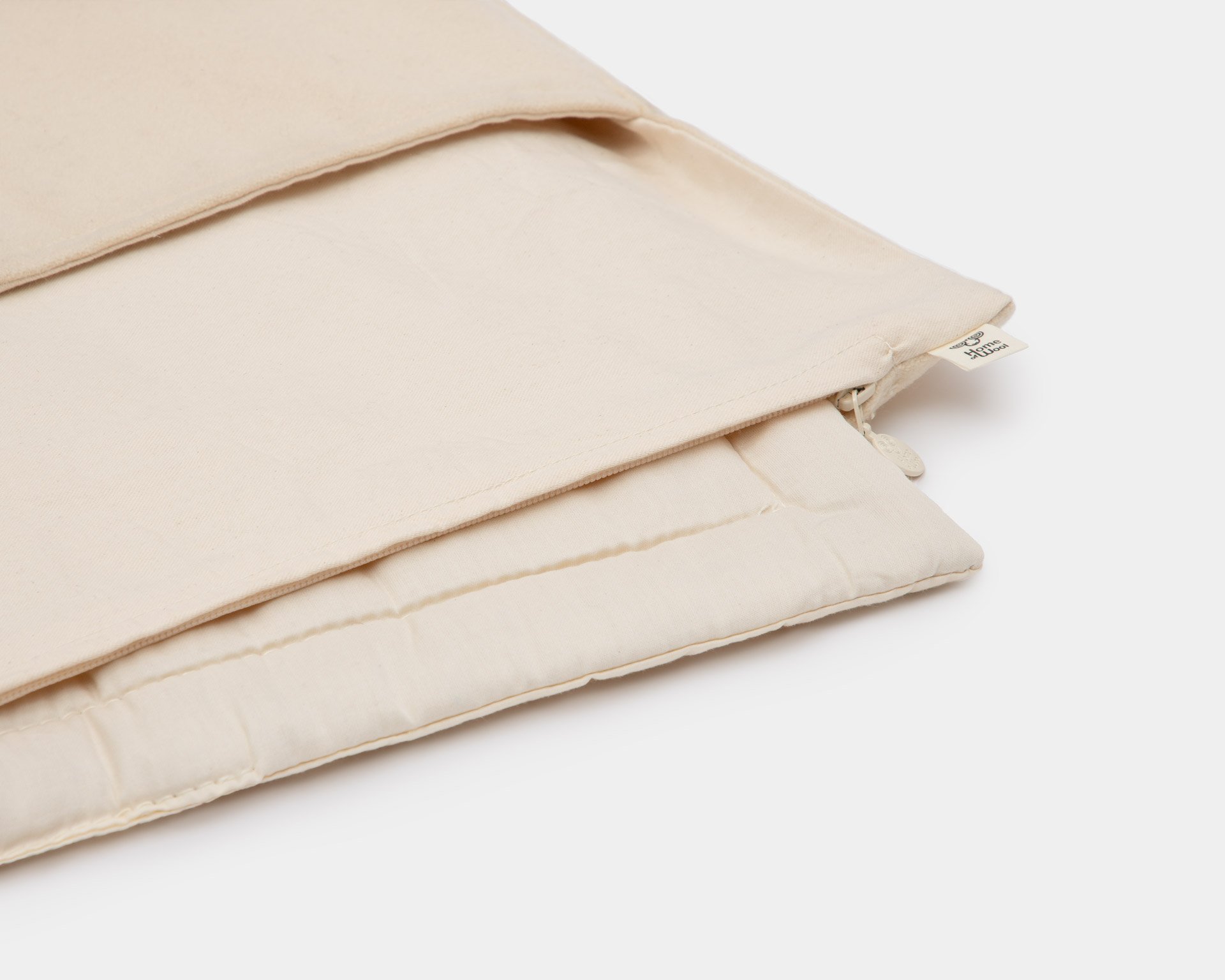 The cover is made from your choice of organic fabric: organic cotton or virgin wool. It unzips for easy washing, so you can always keep it fresh. A small pocket offers space for wipes and cream. The ties keep the pad folded when you are on the move.