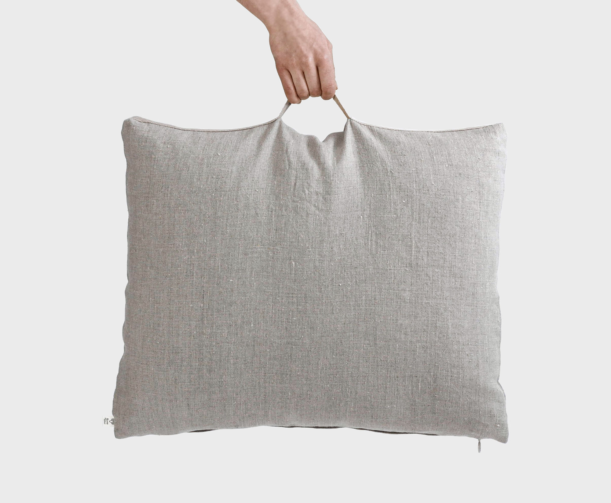 Each insert is encased in organic cotton, and the linen cover is crafted as a pillow with handle, making it easy to grab and carry from the car to the train or onto an airplane. By resisting moisture buildup, it offers dry and cool sleep surface. Its hypoallergenic qualities make it an ideal portable pillow for sensitive sleepers.