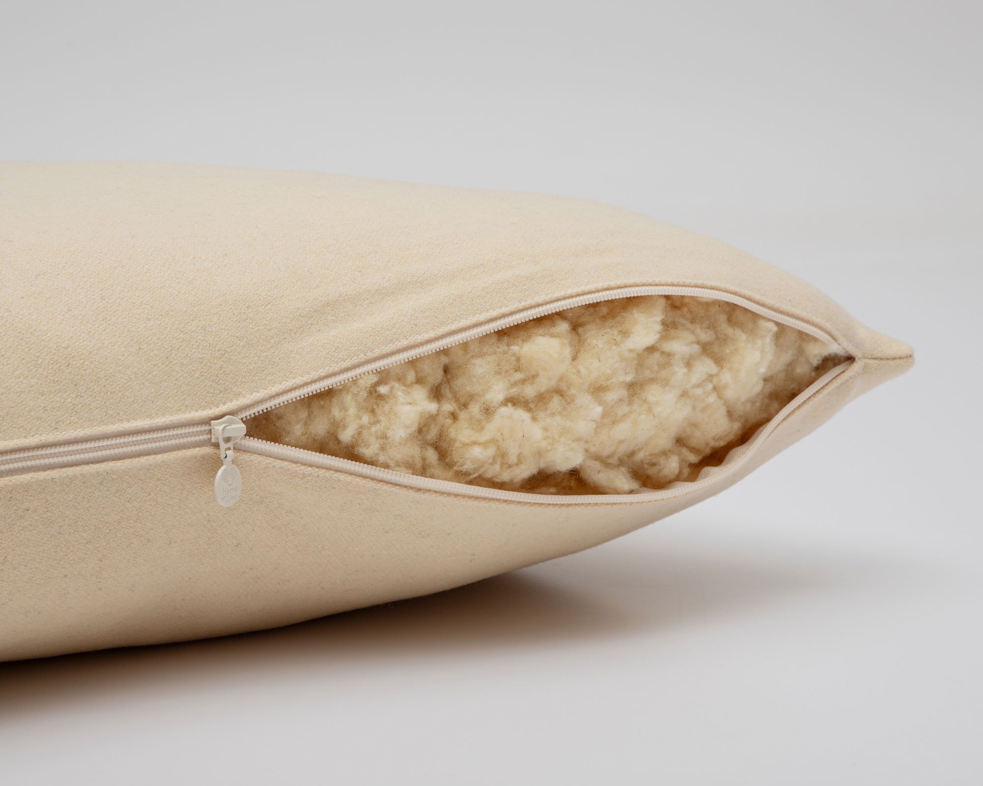 Vår ullkudde ger en stadig och balanserad komfort för huvud och nacke. Fylld för hand med 100% ren ullfyllning, det är en säker sovkudde som är allergivänlig, giftfri och naturligt bekväm. Gjord för att stödja vilsam sömn under alla årstider.